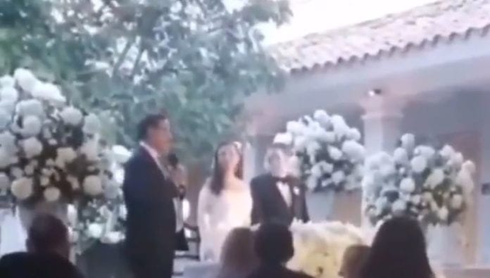 El video fue compartido a través de redes sociales y se puede ver a la alcaldesa parada al lado de su pareja, mientras que un hombre dice algunas palabras.