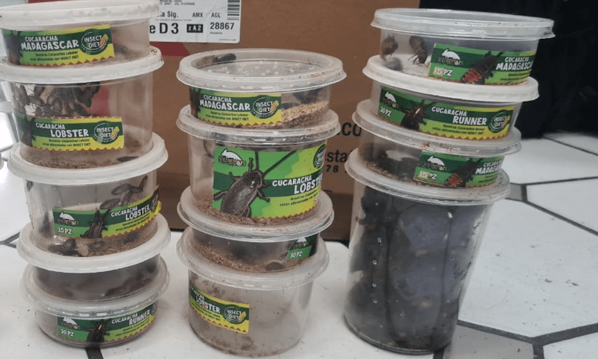 Pero al abrir la caja, el contenido los sorprendió. Había vida dentro del paquete: dos ajolotes y siete tortugas Trachemys. Sin embargo, fueron los animales más pequeños los que llamaron su atención y la de su binomio canino: 60 cucarachas Madagascar, 120 Runner y 140 Lobster. Fueron 320 en total, como se apunta en el informe.