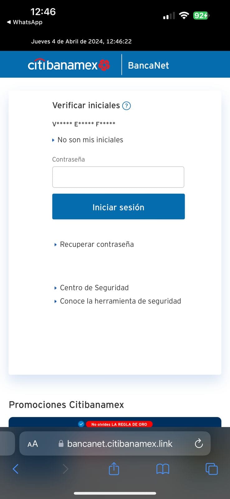 “Atención cliente Citibanamex: Detectamos movimientos inusuales. Verifica los datos en tu bancanet para evitar bloquedo de cuenta. Accede https://citibanamex.link”