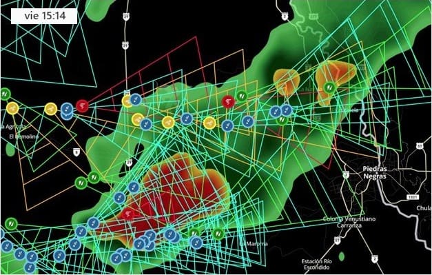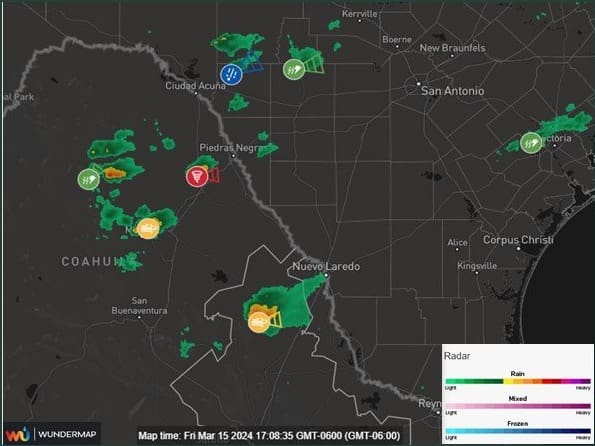 Desde la cuenta de Conagua Clima se alertó también sobre esta posibilidad, y agregó que se tenían previstos vientos con rachas de 60 a 80 kilómetros por hora, caída de granizo de diferente tamaño y tormentas eléctricas en el municipio de Piedras Negras.