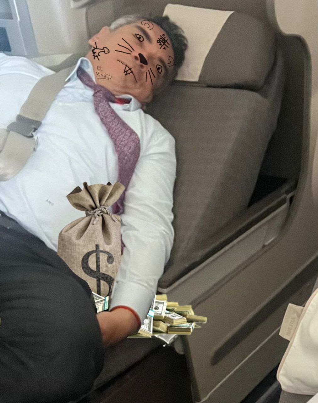 Luego de que se hiciera viral la foto de Alejandro Moreno Cárdenas donde está durmiendo en un asiento de avión, los memes comenzaron a surgir en redes sociales.