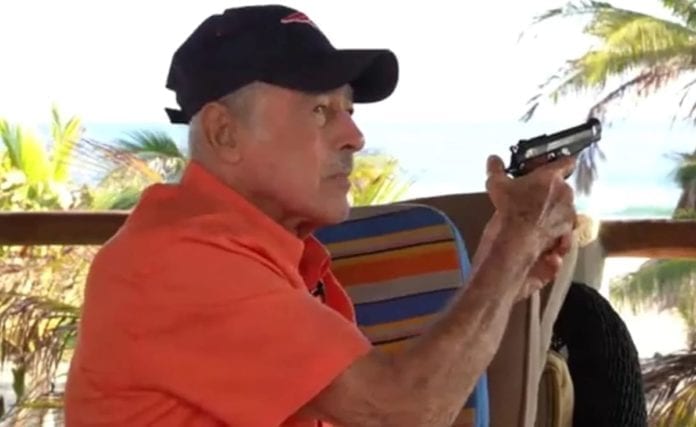 El actor Andrés García sacó un arma y la accionó al aire justo en medio de una charla con Yordi Rosado, este le preguntó si era legal disparar y García respondió: “Me vale madre, si te vas a ajustar a lo que es legal no te dejan ir al baño”.