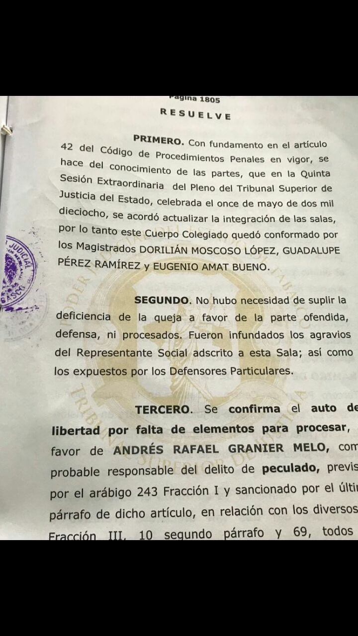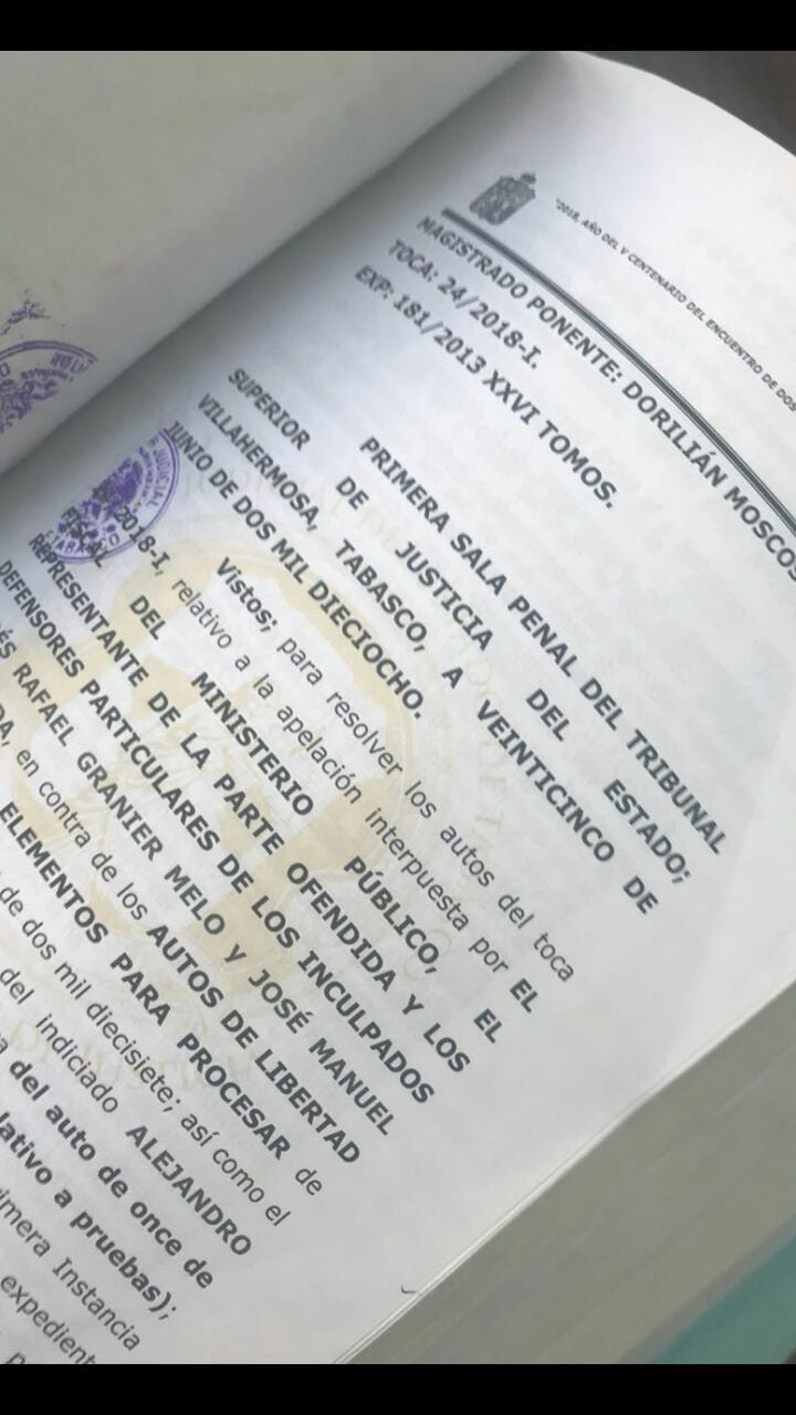 Lo anterior, por los jueces Eugenio Amat Bueno, Dorilián Moscoso López y Guadalupe Pérez Ramirez, según trascendió en documentos esta tarde en Tabasco.