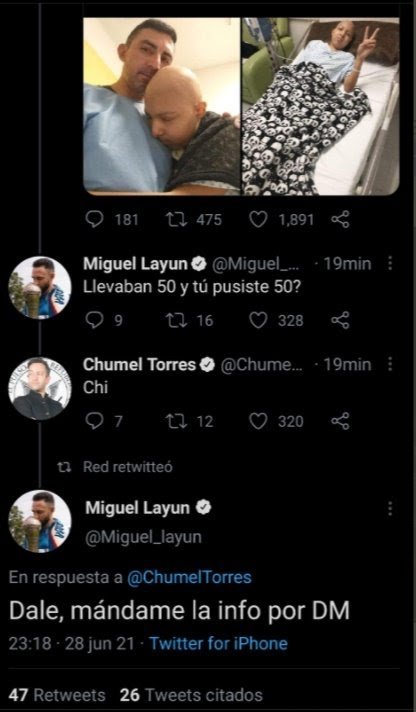 Tras la respuesta de Chumel, el futbolista Miguel Layún también expresó su deseo de ayudar a Jonathan con la aportación de más dinero.