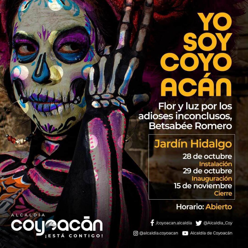 “Coyoacán es uno de los principales puntos de visita turística no sólo de la Ciudad de México, sino de todo el país precisamente en estas fechas. Nos estamos preparando para recibir a todas y todos con los brazos abiertos. Tenemos programadas diversas actividades y una de las principales será la colocación de una ofrenda titulada ‘Flor y Luz por los adioses inconclusos‘ de la artista Betsabée Romero, quien también expone en Arabia Saudita y en el Museo de Louvre, en Paris”, dijo.