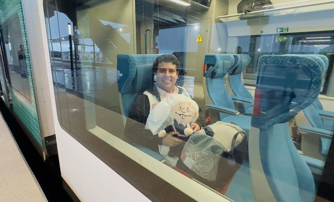 Algunos de los pasajeros se dieron tiempo para lucir souvenirs como playeras del Tren Maya. Incluso, un “amlito” de peluche fue uno de los primeros en subirse al ferrocarril.