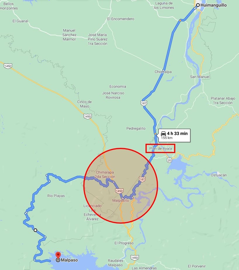 Dicha modalidad de asalto se ha detectado sobre la vía de Huimanguillo, Tabasco a Malpaso, Chiapas, sobre vías 187 y 145-D, pasando la comunidad Plan de Ayala, e iniciando zona de curvas hacia comunidad La Herradura, así lo informa Domínguez Reséndiz Consultores.