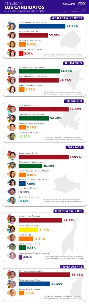 De acuerdo con el calendario electoral 2022 los estados de Aguascalientes, Durango, Hidalgo, Oaxaca, Quintana Roo y Tamaulipas comienzan este 3 de abril la campaña electoral hasta el 5 de junio.