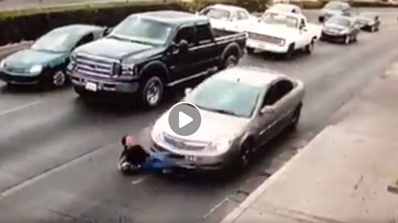 Una mujer intentaba cruzar una calle mientras los autos avanzaban pero resbala y es brutalmente arrollada por un automovilista que no logra verla.
