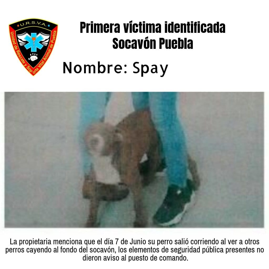 “La propietaria se puso en contacto con nosotros y refiere que la tarde de ayer a las 18:00 horas, aproximadamente, su perro salió corriendo por la zona del socavón, y cuando los elementos de seguridad pública quisieron ahuyentarlo corrió hacia una de las orillas, cayendo frente a ellos sin dar aviso al puesto de comando”, señala una parte del reporte de URSVA.
