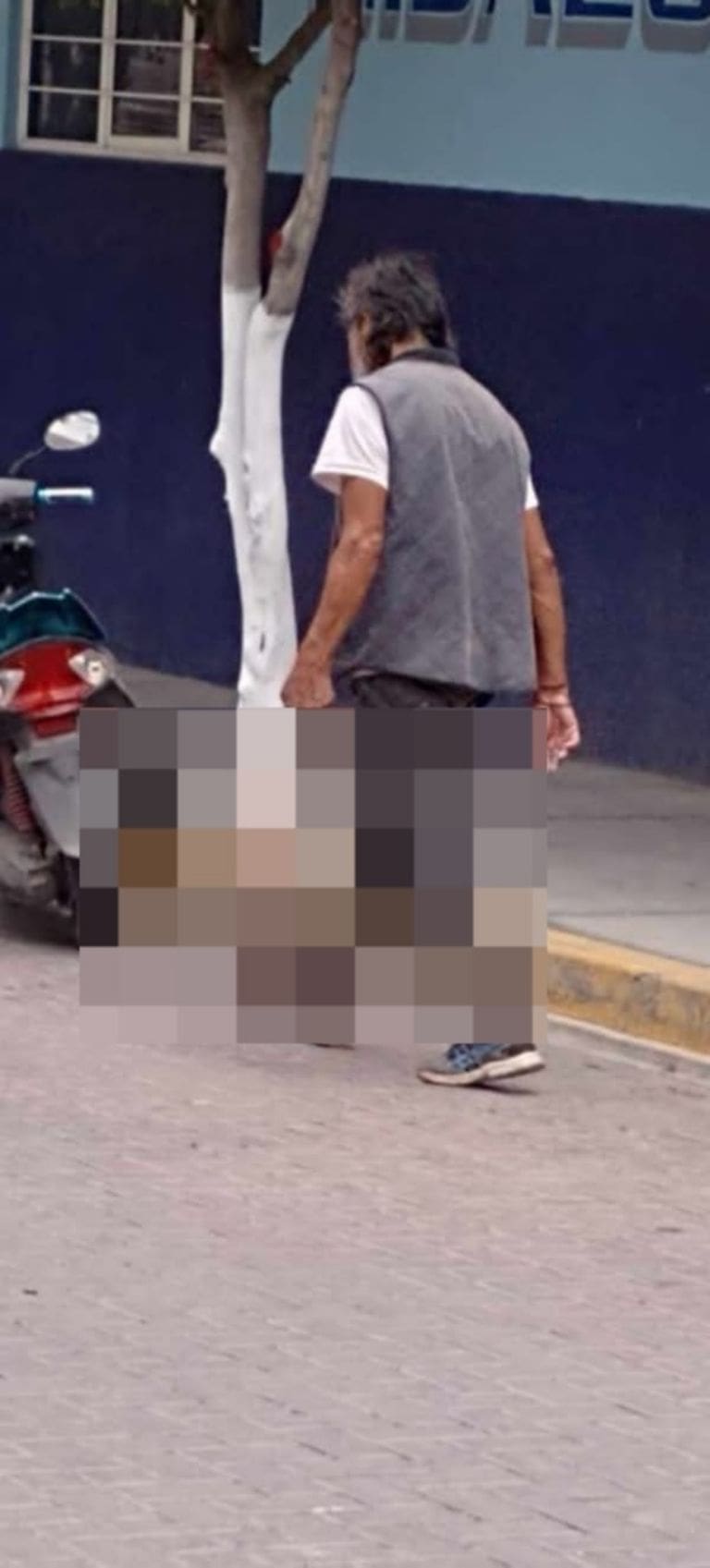 En las imágenes difundidas en redes sociales, se observa a un hombre vestido con jeans negros, playera blanca y chaleco gris, sosteniendo el cadáver del perro. Aunque las fotografías no muestran claramente el estado del animal, las denuncias sugieren que el perro había sido desollado y despojado de sus órganos.