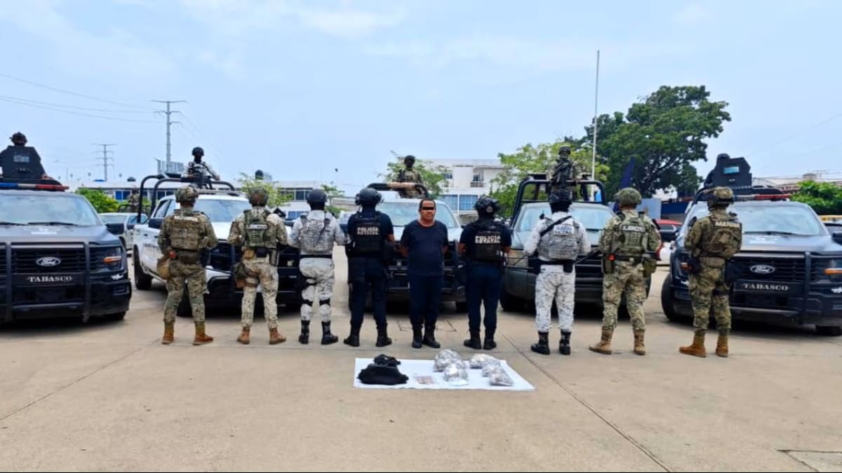 En el operativo, realizado con apoyo del grupo especial Tabscoob, se le aseguraron bolsitas con hierba seca con características de marihuana y dosis de una sustancia granulada similar al cristal. Tanto el detenido como lo decomisado fueron puestos a disposición del Ministerio Público.