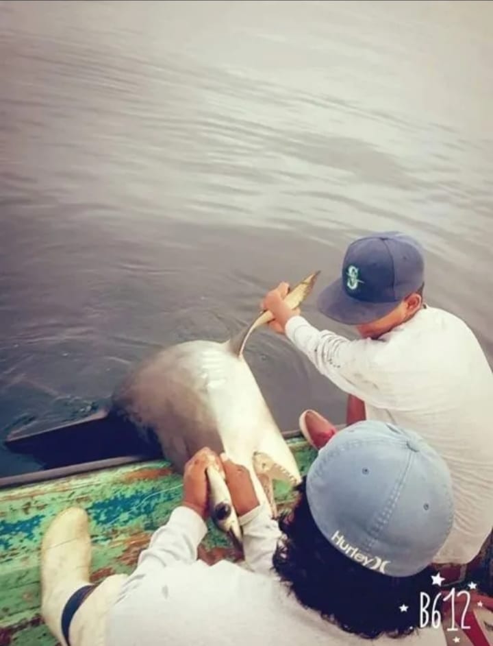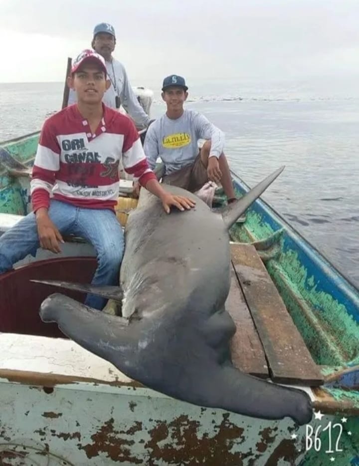 Después de internarse en la costa de Nayarit, pescadores escuinapenses capturaron untiburón martillo (Sphyrnidae) de 150 kilogramos. Iban en busca de una buena pesca de autoconsumo en estos tiempos del Covid-19.