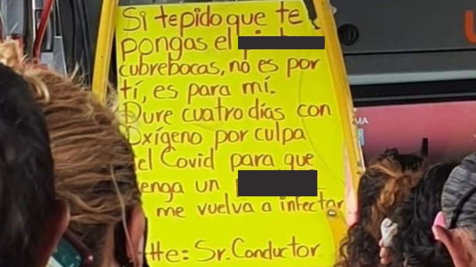 Ciudad de México.- Un chofer se hizo viral en redes sociales tras poner en la micro una pancarta en la que explica cómo le fue con el Covid-19.
