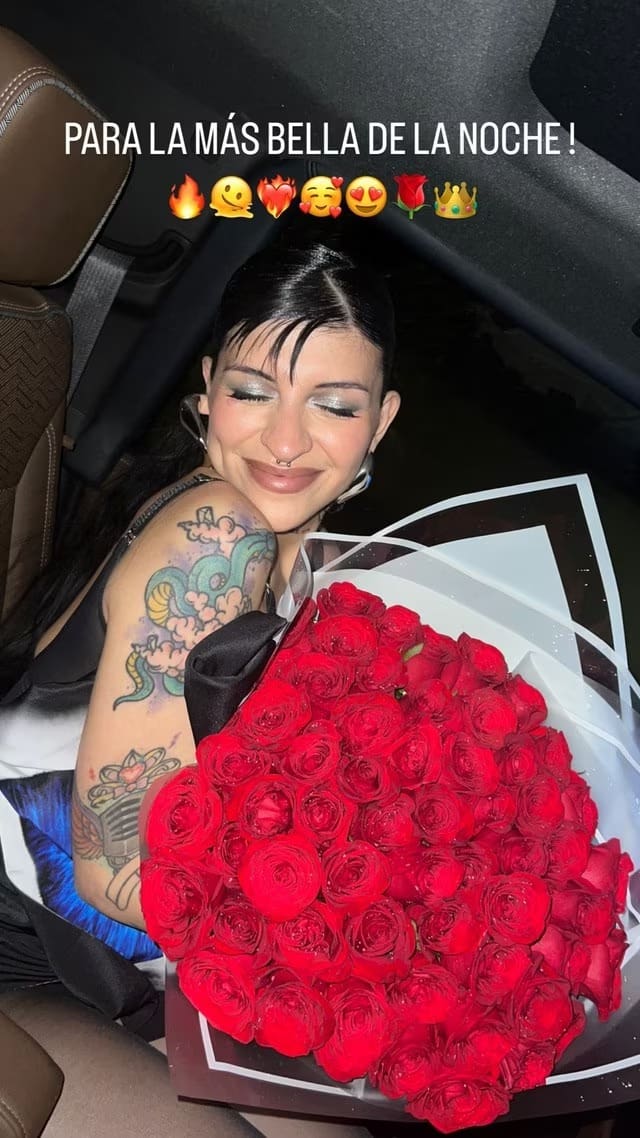 Asimismo, a Christian Nodal no le bastó esto, ya que hasta le regaló un enorme ramo de rosas rojas a Cazzu, detalle con el que sorprendió a su novia quien felizmente lo recibió.