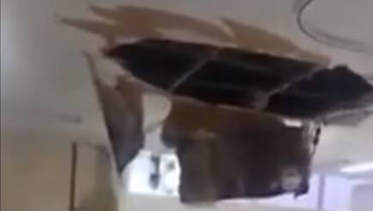 Mientras que en un video compartido por familiares de los pacientes, se aprecia cómo quedó el techo del hospital a raíz del desprendimiento.