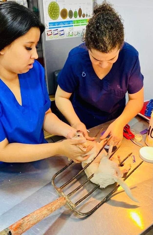 La lesión del perrito era delicada, pues atravesó su columna. Ante ello unos veterinarios acudieron a la vivienda y lo primero que tuvieron que hacer fue tranquilizarlo y estabilizarlo, pues sentía mucho dolor y sangraba.