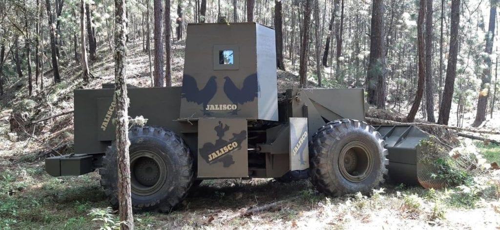 El vehículo que hoy se sabe es del Cártel Jalisco Nueva Generación (CJNG) fue ubicado en Tepalcatepec. Es hechizo, pues se nota que fue blindado y modificado de manera artesanal, y originalmente era un tractor.