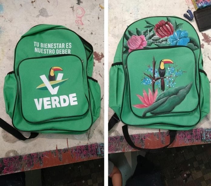 Una niña fue a visitar a su tío con una mochila que le habían regalado como propaganda del Partido Verde Ecologista de México (PVEM).