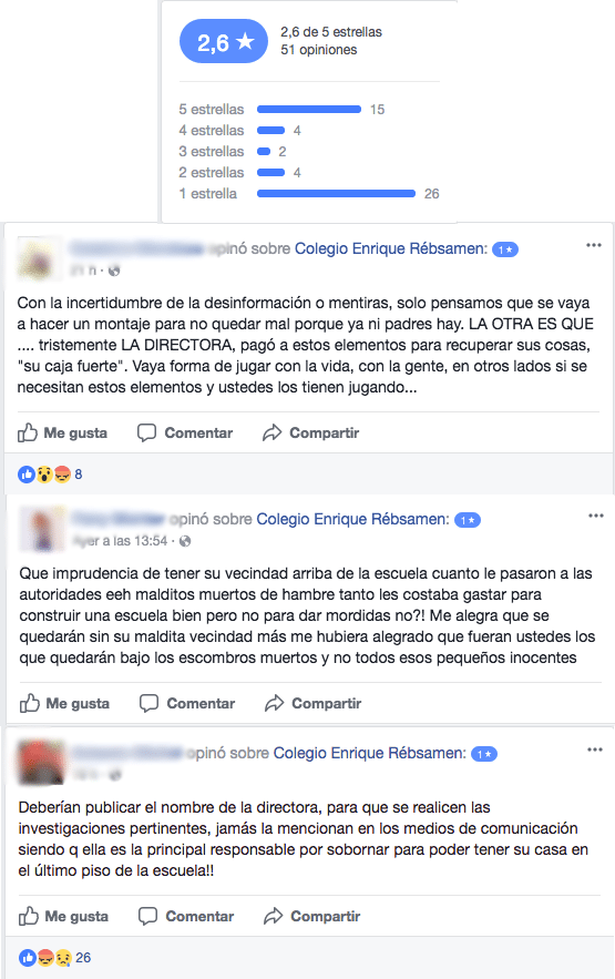 Usuarios de Facebook, dentro de la página oficial del Colegio Enrique Rébsamen (Facebook.com/ColegioER14300) han evidenciado los supuestos actos de corrupción de la directora; así como la negligencia de las autoridades en permitir la edificación del tercer piso como habitacional.