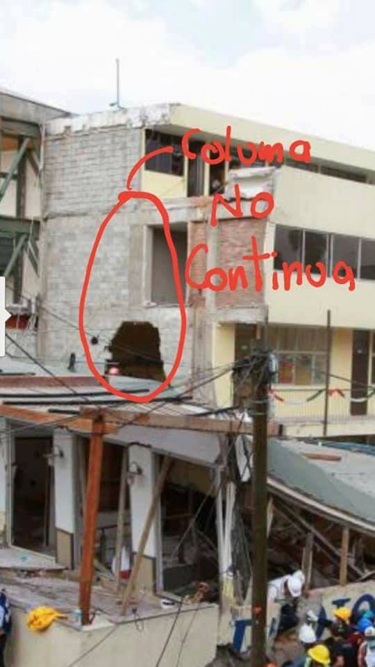 En cuanto a arquitectura, se puede apreciar en las fotografías que las columnas del edificio colapsado no eran continuas.