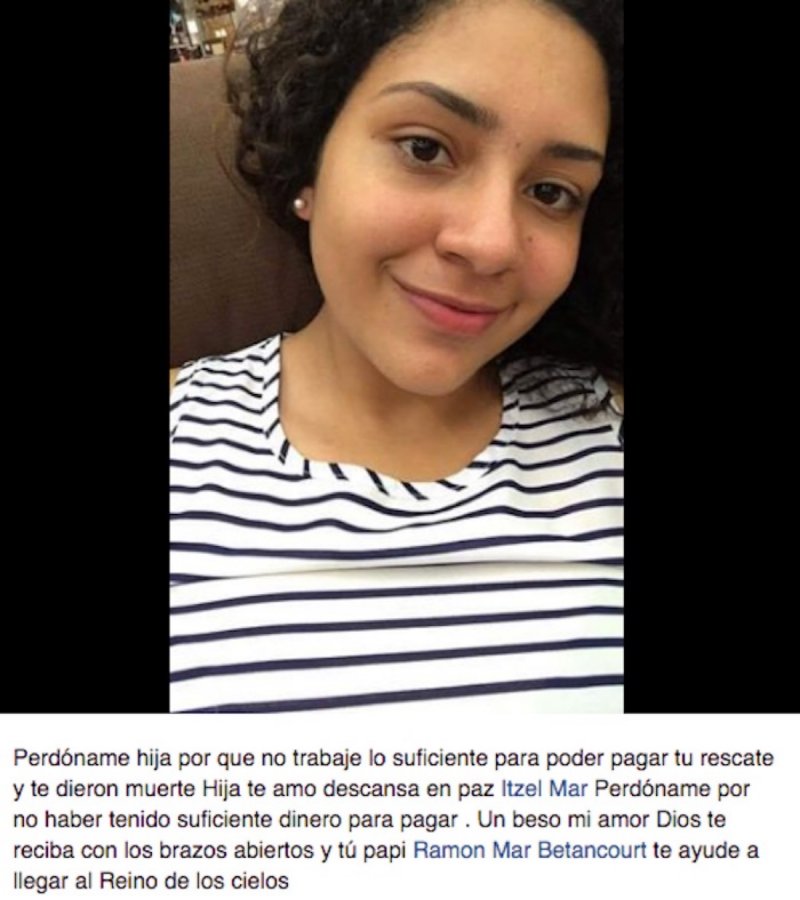 “Perdóname hija porque no trabajé lo suficiente para poder pagar tu rescate y te dieron muerte”, posteó Gabriela Mar Betancourt al confirmarse la muerte de su única hija.