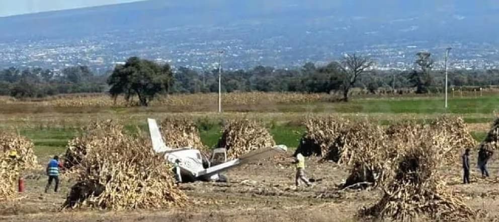 Protección Civil de Puebla confirmó el desplome de una avioneta en el municipio de Huejotzingo, en inmediaciones de campos de cultivo. Se trató de un vehículo tipo Piper perteneciente a una escuela de vuelo. Las personas lesionadas son el piloto de la aeronave y el copiloto, este último estudiante.