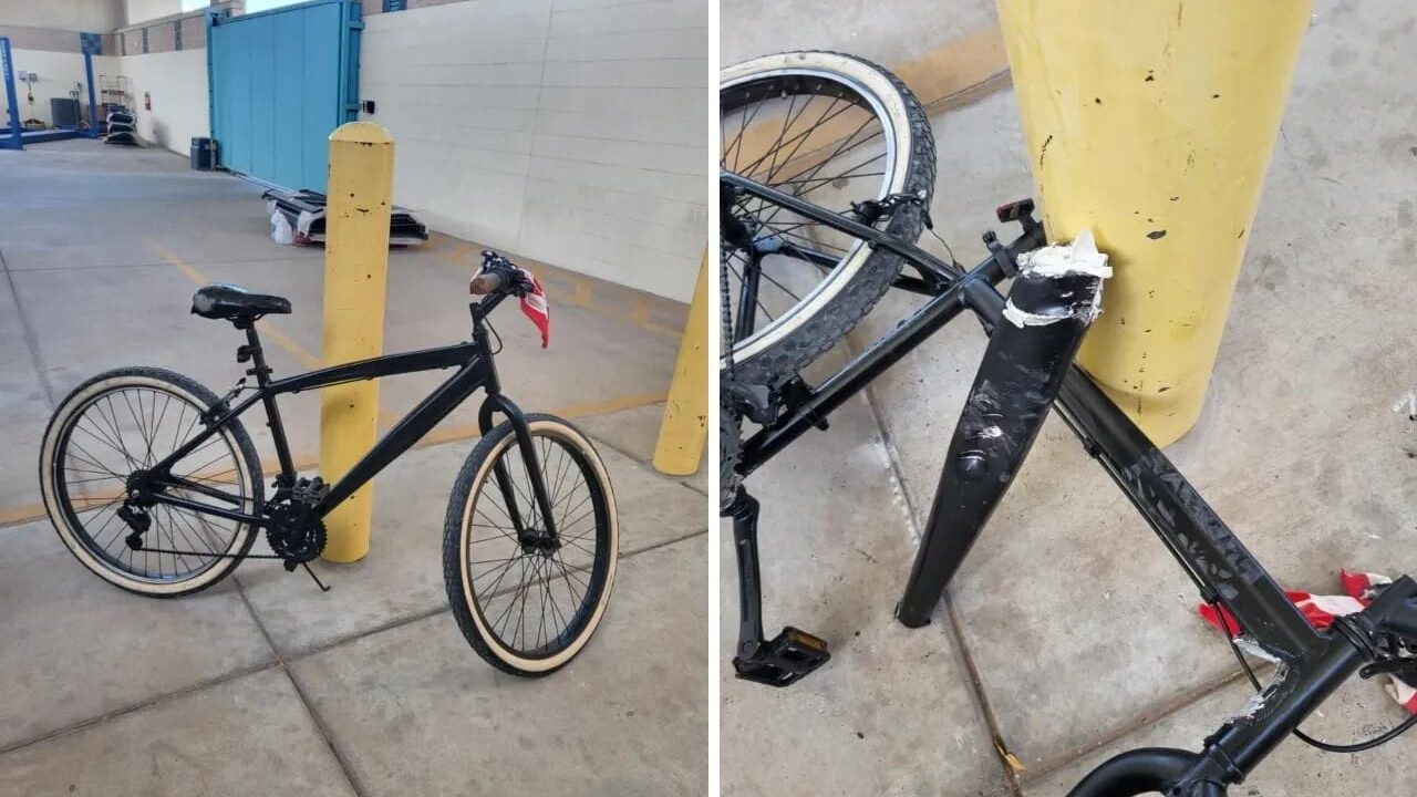 El sujeto y su bicicleta fueron conducidos a un área en la que con sistemas no intrusivos y una unidad canina especializada en la detección de narcóticos, los agentes fronterizos descubrieron unos bultos ocultos entre los tubos del cuadro de la bicicleta.
