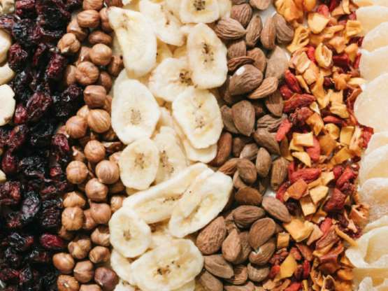 7. Frutos secos: (Arándanos, pasas, ciruelas pasa, bayas goji, etc). Están repletos de vitaminas, grasas saludables y proteínas, además, hay una gran infinidad.