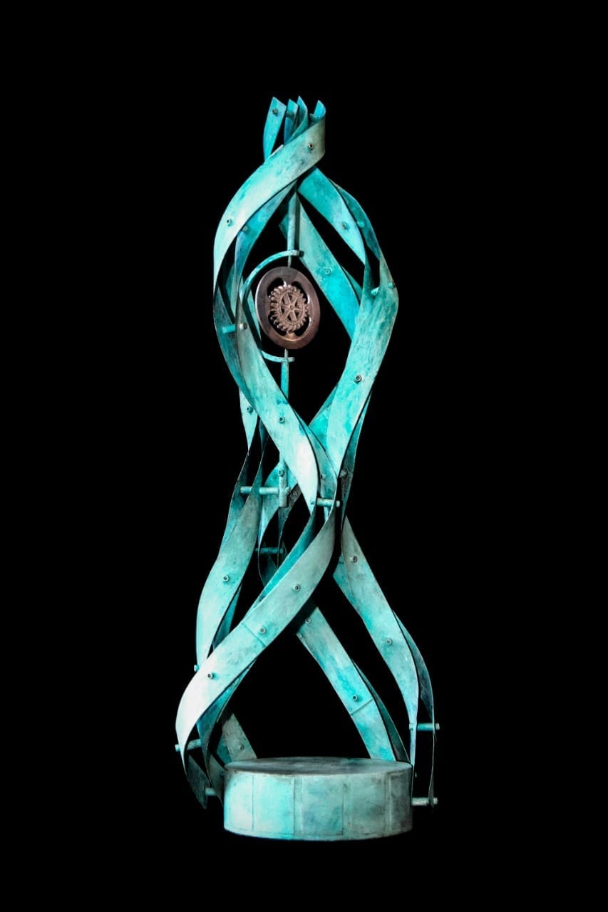 Ciudad de México.-El Paseo de la Reforma de la CDMX será engalanado con una nueva escultura del artista Miguel Peraza, pieza que rendirá homenaje por los 100 años del Club Rotario de la Ciudad de México, organismo que recientemente entregó galardones a escala de “Dos llamas”, nombre de dicha obra.
