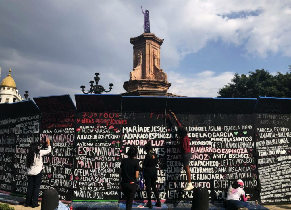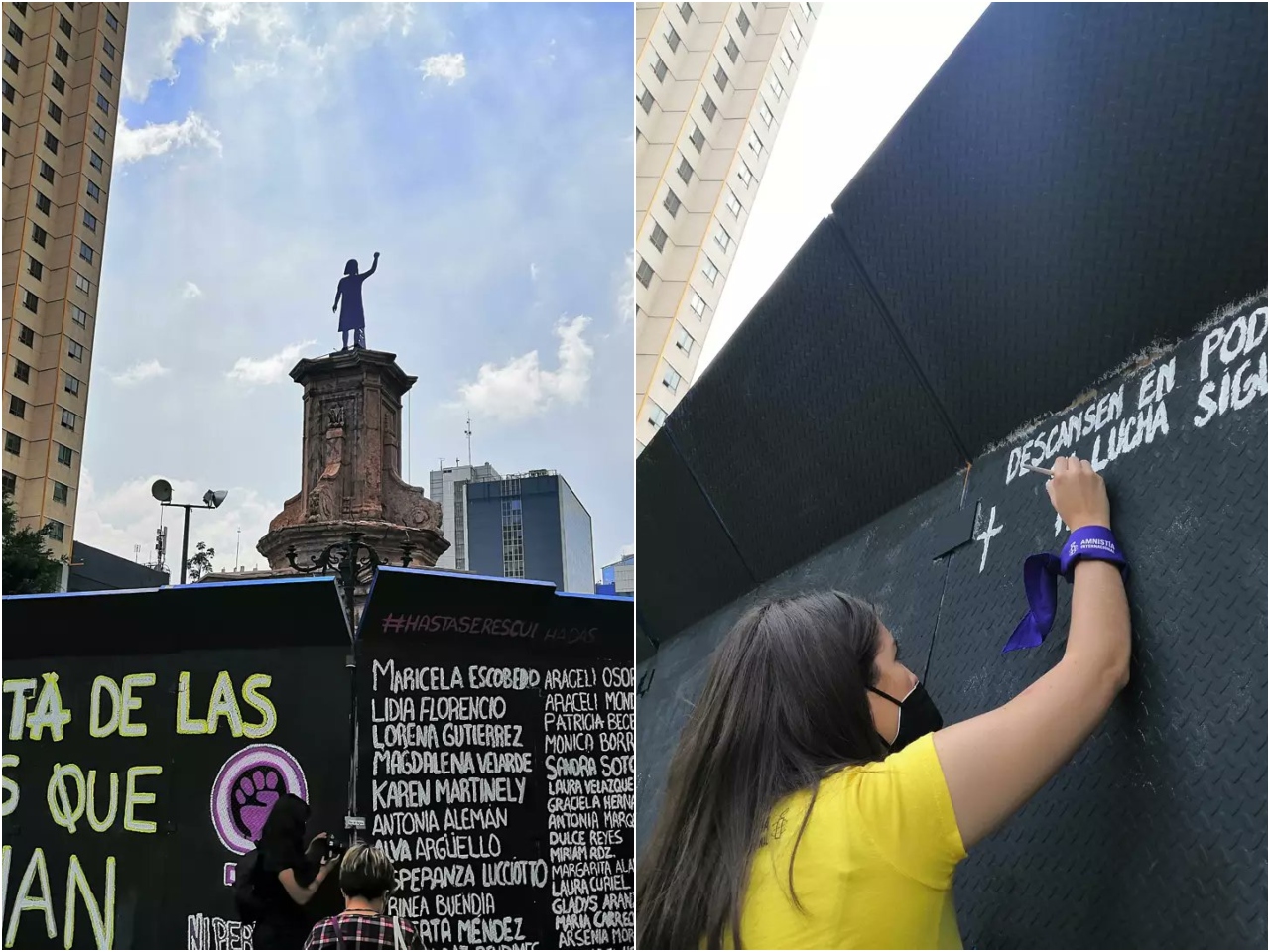 Los nombres de cientos de mujeres con quienes la justicia está en deuda en México han sido reescritos este domingo en la antigua glorieta de Colón, en el emblemático Paseo de la Reforma, en Ciudad de México.