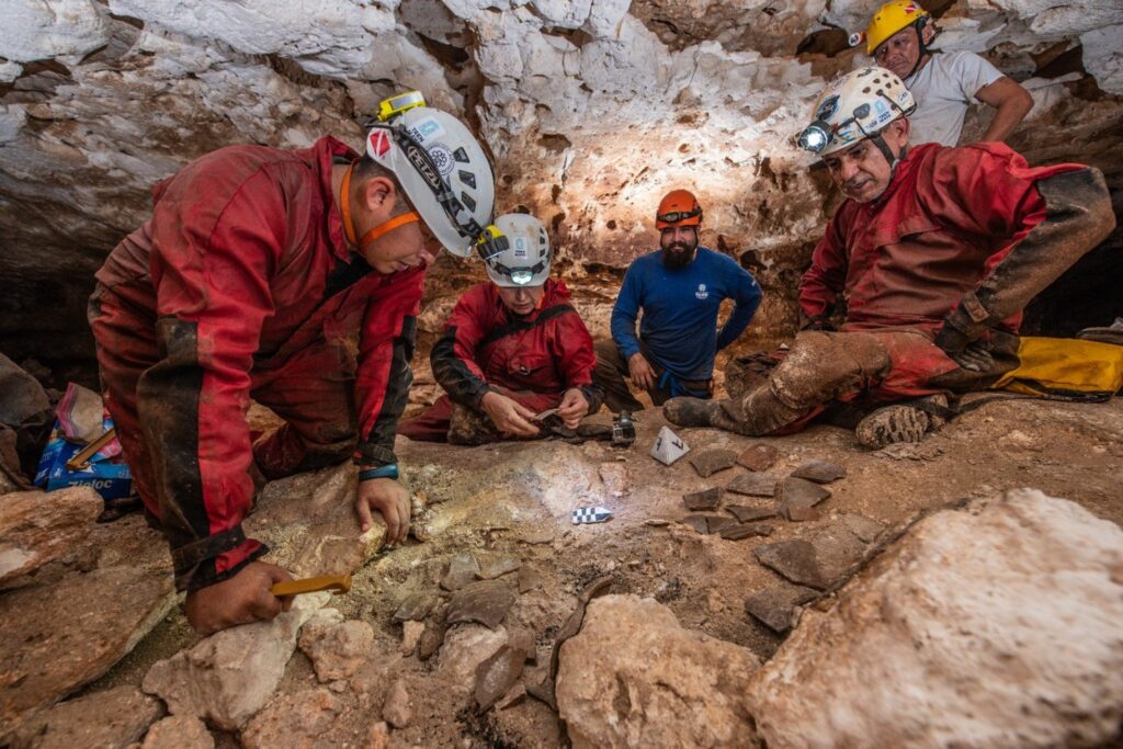 “Estaba en una parada de seguridad. Cuando se hace buceo a más de 20 metros de profundidad, se realiza una pausa cada cierto tiempo. Me detuve para ubicar hasta dónde llegaba el espejo de agua durante la época prehispánica. Ahí, me percaté de una cavidad en la marca de agua que tenía un grosor bastante considerable, eran unos 90 centímetros y empecé a seguir la mancha negra que se ve en la roca. Me metí un poquito a la cueva y de repente vi lo que parecía ser un tronco de algún árbol, hasta que lo toqué y lo vi de frente, me di cuenta de la forma y dije: ‘¡Esto no es un tronco!’. Al interior de la embarcación había marcas de cortes muy rectos, que no eran hechas por la naturaleza, sino por el hombre”, detalló la arqueóloga.