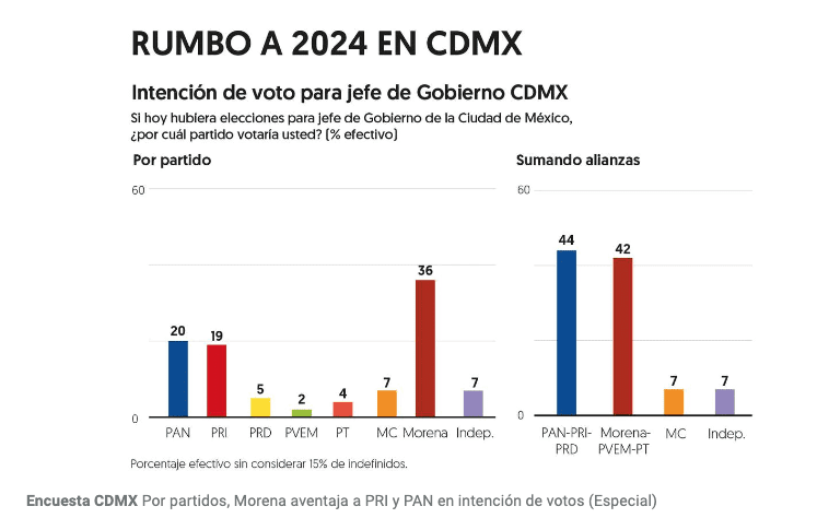 ¿Serán capaces de mantener esta tendencia para aspirar a arrebatarle la capital a Morena? La Cdmx es sin duda uno de sus bastiones y sería sin duda una victoria importante para la alianza Va por México en caso de que lo lograra. Pero solo es un sondeo y falta mucho para 2024.