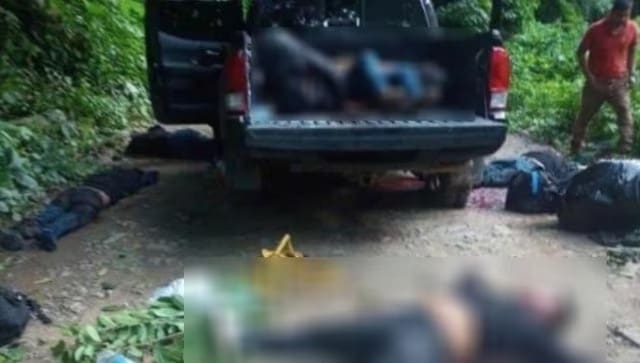 Como resultado, al menos 7 hombres murieron y sus cuerpos quedaron alrededor de la camioneta y uno más cerca de una de las motocicletas que conducía, entre los matorrales cuando intentaba huir.