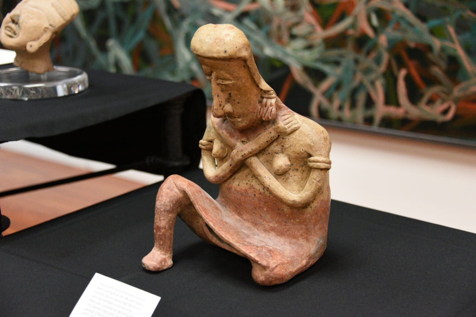 También se regresaron un par de piezas que son originarias de la tradición cultural de Tumbas del Tiro, la cual se desarrolló entre los años 100 a.C. al 600 d.C. en el occidente de México: una vasija efigie hecha en barro mediante las técnicas de modelado, alisado y pulido que representa a un cánido en postura habitual; una figura antropomorfa, también de barro trabajada mediante las técnicas de modelado, alisado, aplicación de pastillaje e incisión, que representa a un personaje masculino de pie, desnudo, que porta tocado, un mazo y muestra escarificaciones en el área de los hombros.