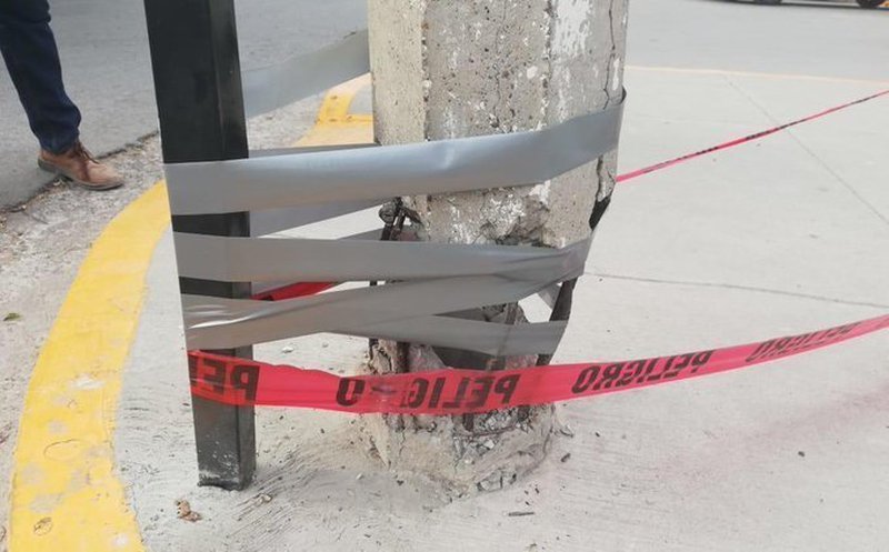 Los ciudadanos denunciaron que un poste de luz dañado por un accidente automovilístico fue “arreglado” por la CFE con cinta de ductos, y sólo le colocaron una franja roja con la leyenda “peligro”.