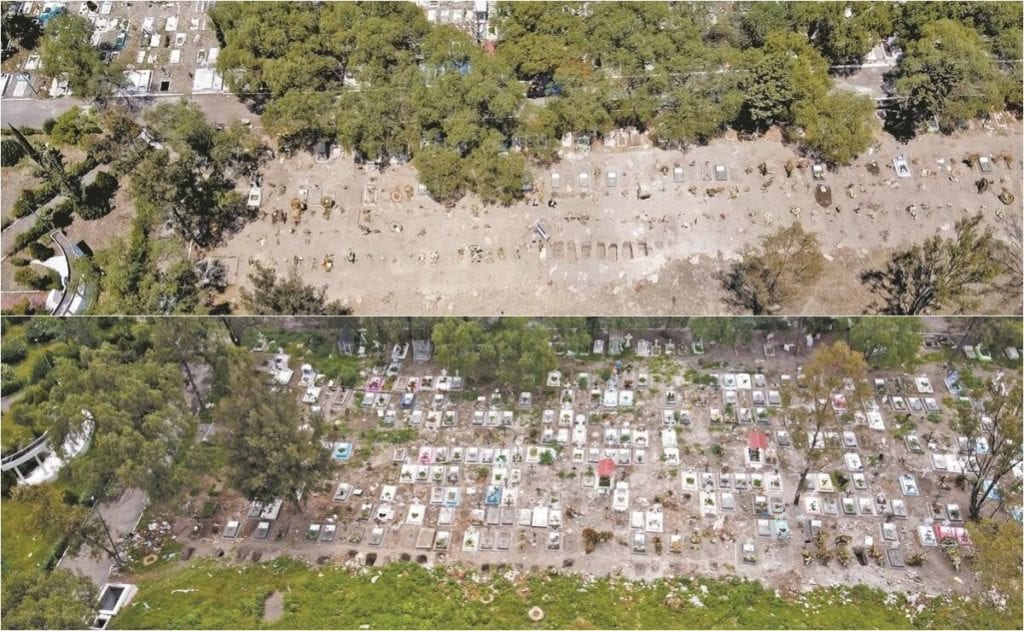 En las siguientes imágenes se realizó una comparación del panteón, donde se aprecia cómo se veía a mediados de mayo y cómo observa desde finales del mes pasado.