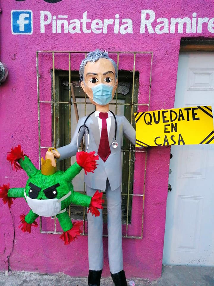 Una vez más la Piñatería Ramírez hace de las suyas y presenta su más reciente creación: Gatell contra el coronavirus.