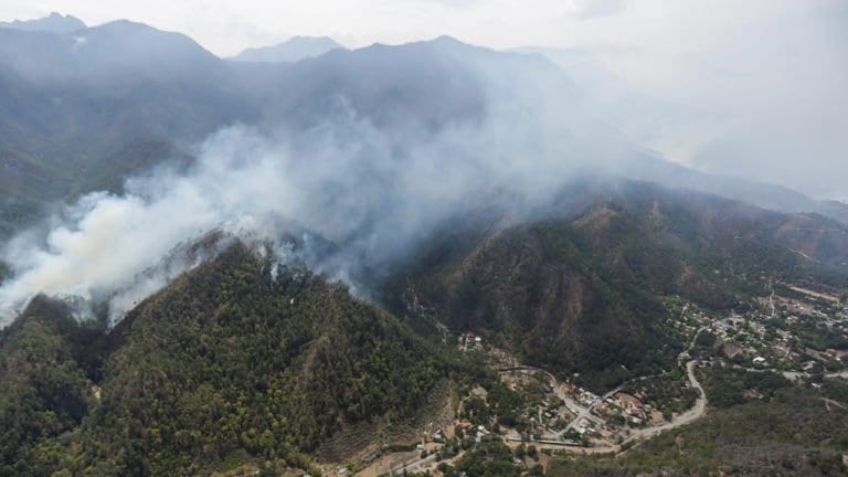 Otro de los incendios que se suscitó, fue dentro del Parque Nacional Cumbres de Monterrey, que también incluye a la sierra de Santiago, ahí la Conafor dijo que ya tienen un 75% de control y 60% de liquidación, con 659 combatientes y cinco helicópteros.
