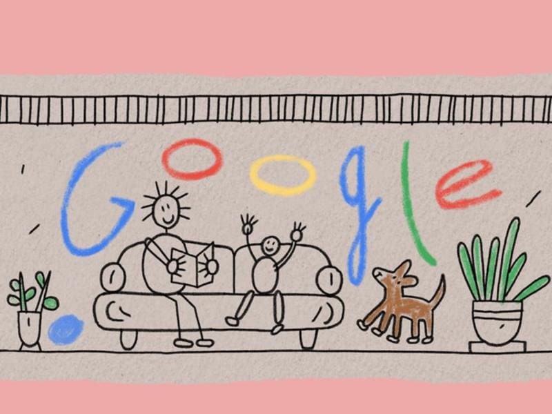 Si ingresas a una pestaña de Google te podrás encontrar que en la parte superior del buscador hay un Doodle en el que se representa el dibujo de un niño, en el que se ve una madre con su hijo sentados en un sofá, un par de macetas con plantas y un perro. La madre sostiene lo que parece ser un libro.