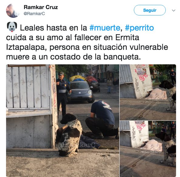 La mañana de este jueves, sorprendió a los transeúntes un hombre que desgraciadamente murió y conmovió su perro que como Hachiko lo acompañó hasta el final de sus días.