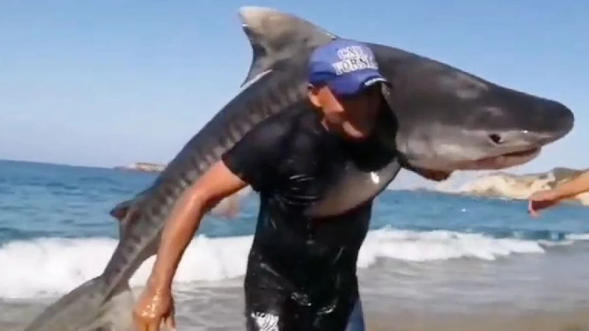 Video: Hombre atrapa con sus manos a un tiburón tigre en Michoacán