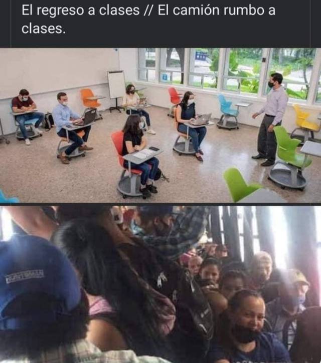 También afirmó que el regreso a clases sería voluntario y seguro, aunque memes dieron constancia de que no en todas las escuelas fue así.