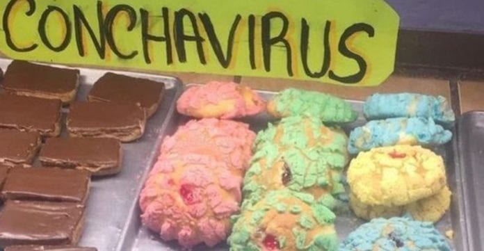 En redes sociales ya comienza a circular la imagen de una panadería en donde se ven las “conchavirus”, las cuales tienen una cobertura de colores azul, rosa y verde, así como un centro de algo que parece ser jalea, simulando el núcleo del COVID-19, el virus que actualmente tiene al mundo atrapado en una crisis.