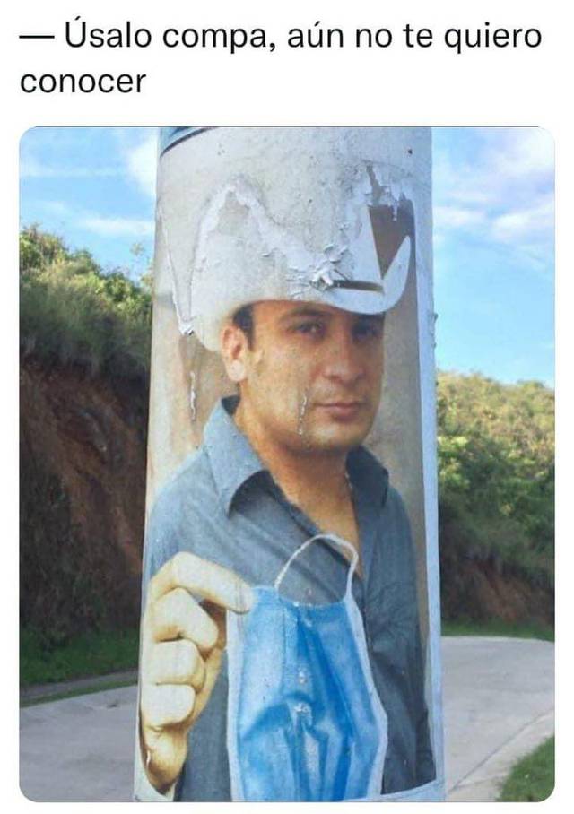 Para ello se han valido de miles de ideas y recurso, un ejemplo de ello, las imágenes que circulan en redes sociales, donde muestran a Valentín Elizalde ofreciendo un cubrebocas.