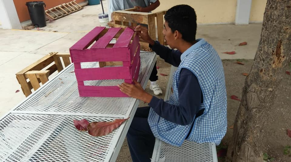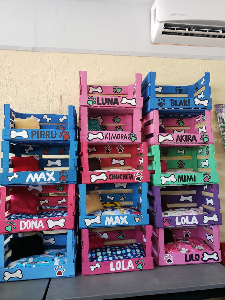 Fue con un poco de pintura, unos huacales de madera en los que tienen la fruta en el mercado y muchas ganas, como Michel Jair comenzó a fabricar estas camas para mascotas.