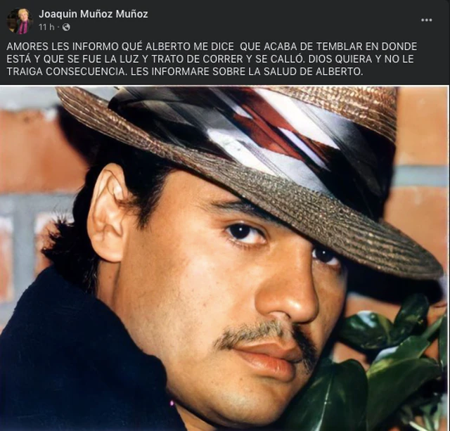 Horas después de que tembló en Acapulco y en la Ciudad de México alrededor de las 20:47:50 horas, el exasistente tomó su cuenta de Facebook para dar su reporte sobre el estado de Juan Gabriel.