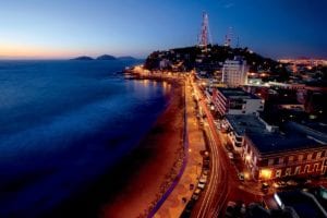 Se encuentra en la costa del Pacífico en el estado de Sinaloa, sus playas de arena bordean su malecón de 21 km de largo y el lugar es famoso por la pesca de altura. En su Centro Histórico, o Viejo Mazatlán, los sitios icónicos del siglo XIX incluyen el Teatro Ángela Peralta y la altísima basílica de la Inmaculada Concepción.