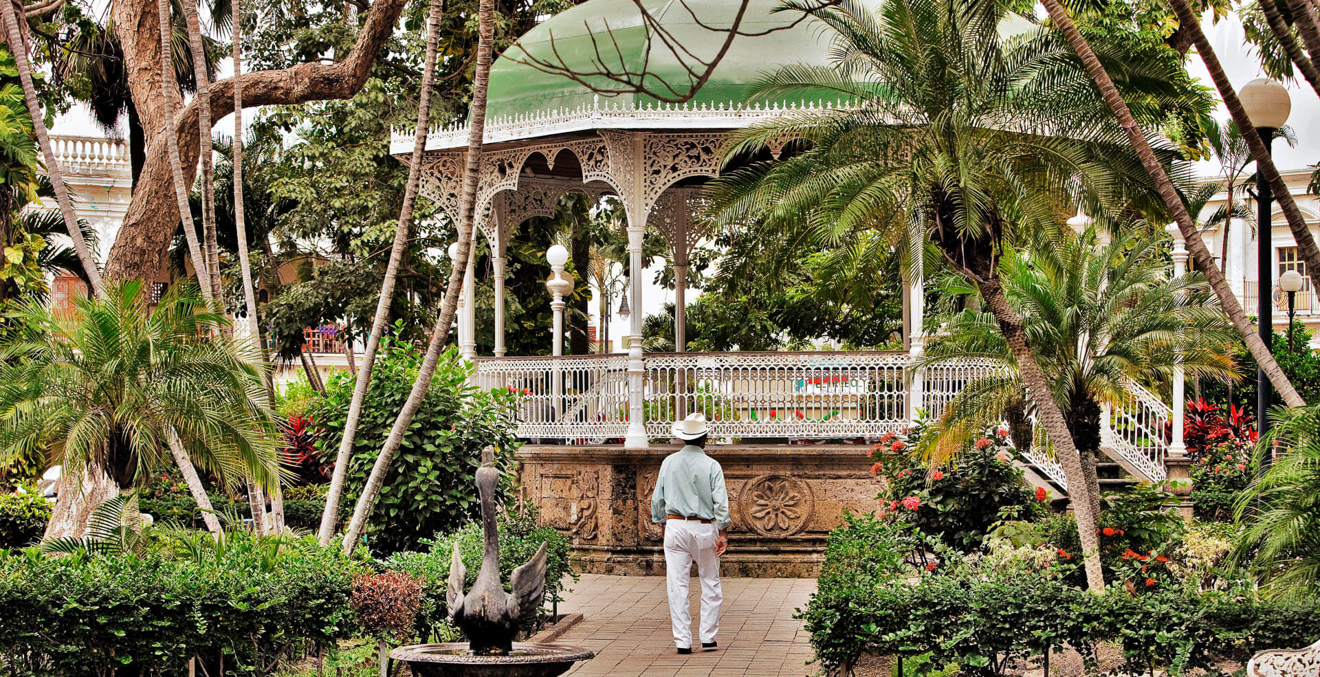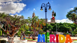 La capital del estado de Yucatán en México, tiene una rica herencia maya y colonial. El punto central de la ciudad es la Plaza de la Independencia, que tiene a sus costados la Catedral de Mérida, similar a una fortaleza, y la Iglesia de la Tercera Orden, de caliza blanca.