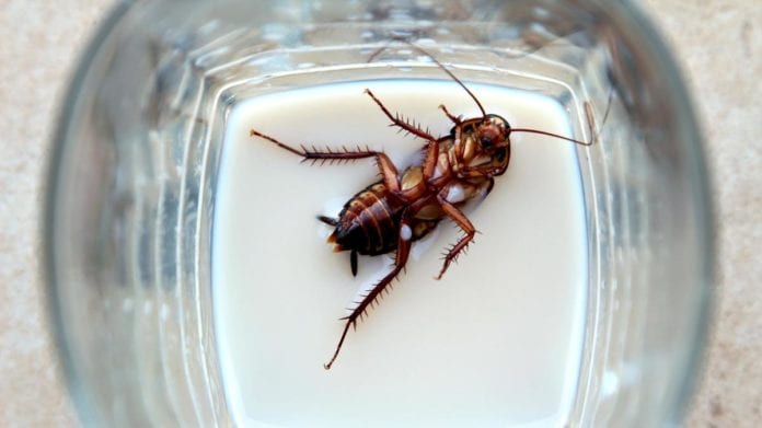 A través de su cuenta de Twitter, publicó cuatro imágenes sobre la fachada de la empresa y las cucarachas dentro de los empaques que contienen la leche.